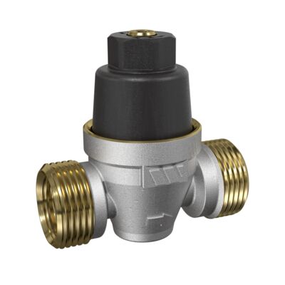 Redubar is an ideal pressure reducing valve for protecting electric hot water storage heaters, household appliances and vending machines. Brass body nickel plated. Pressure reducing valve factory pre-set at 3 bar. The setting is adjustable between 1,5 and 4 bar. Slotted adjusting screw that can be turned with a flathead screwdriver. ADVANTAGES - Compact : takes less space, easier to fit, less obtrusive underneath hot water storage heaters. - Ready to install : factory preset at 3 bar - Any position: Redubar can be fitted in any position. - Robust: does not require any special maintenance. - Silent: The valve system design and types of seals used ensure operation with minimal noise