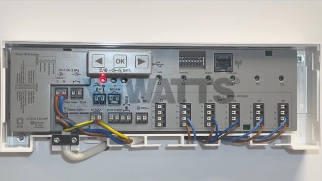 The Wireless digital room thermostat with back-light LCD display is designed to control different types of heating and cooling systems. Temperature control is based on internal sensors. An external sensor (SENSOR 10K - P01228) can be connected without any additional external power supply. A logo on display indicates whether the heating switch-on signal is activated. Features: - Thermostat compatible with WATTS Vision® system - Smartphone App control capability when associated to Central Unit BT-CT02 RF - LCD display with back-light - 3 sensitive touch buttons - Open window detection - Different temperature modes setting - Anti-freeze function - Configurable Hysteresis or PWM regulation - Pin Code & screws lock for public area - Wall or Desk mounting with a stand (included) - 2 parameter menus User and Pro